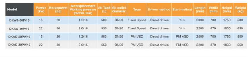THÔNG SỐ VÀ MODEL MÁY NÉN KHÍ 5 TRONG 1 DOKYUNG: