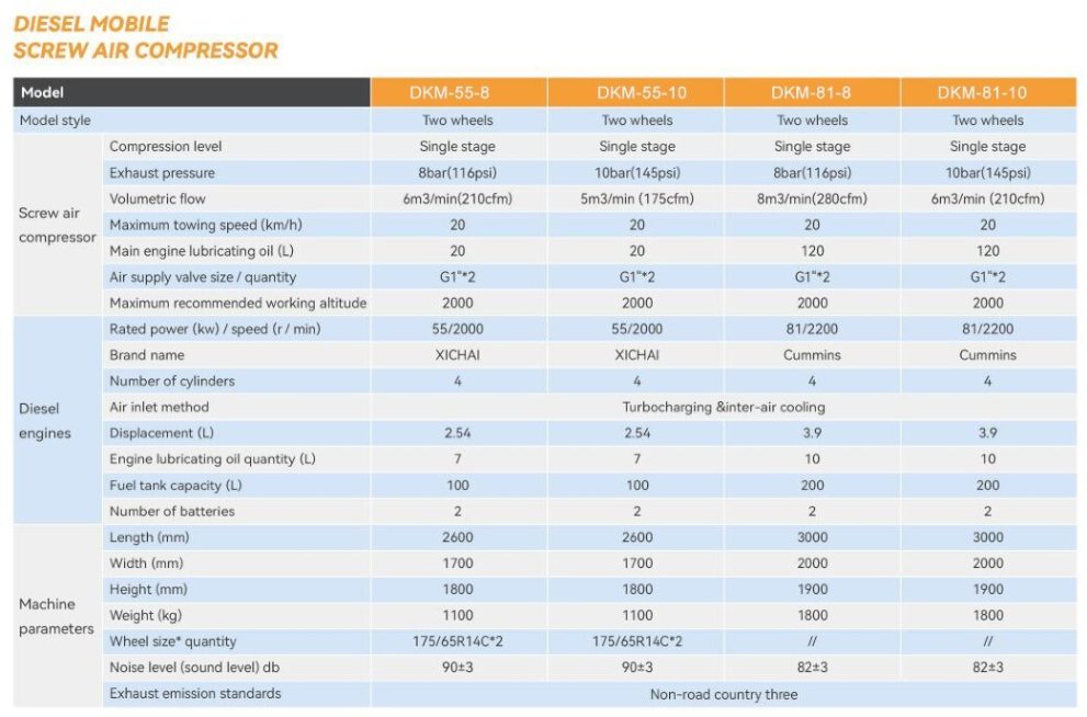 MÁY NÉN KHÍ DI ĐỘNG BÁNH LỐP – ĐỘNG CƠ DIESEL